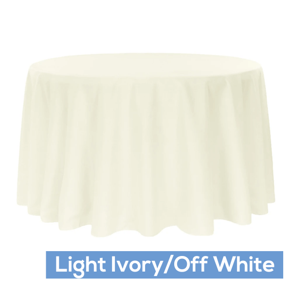108" Round 200 GSM Polyester Tablecloth in Light Ivory/Off White