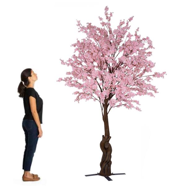 Add a whimsical element to your decor with this tall, yet movable cherry tree. Realistic looking with beautiful branches filled with delicate, pink cherry blossoms reaching towards the sky provides massive visual impact. The base of the trunk is designed to look like interlocking trunks for more visual interest. Perfect for transforming wedding venues, creating fake walking gardens or for decorating malls, trade shows, and lobbies.