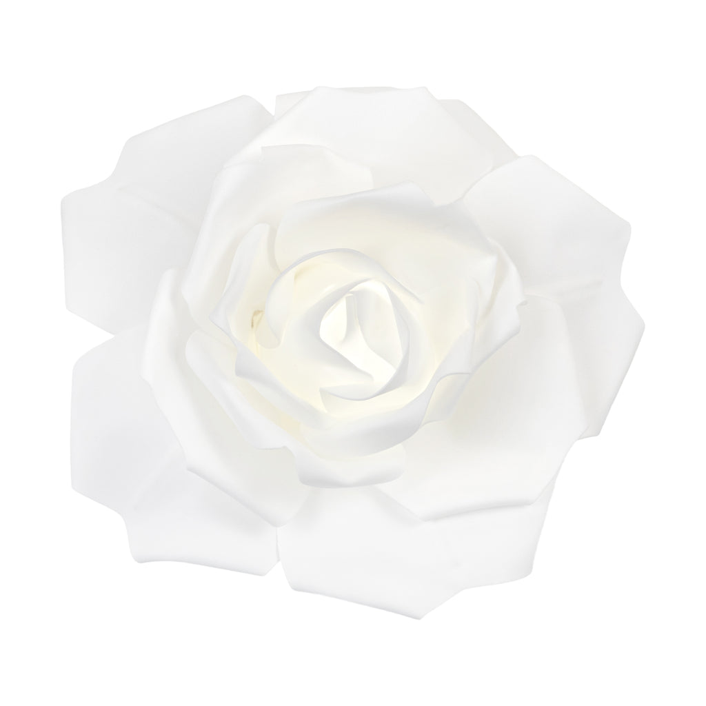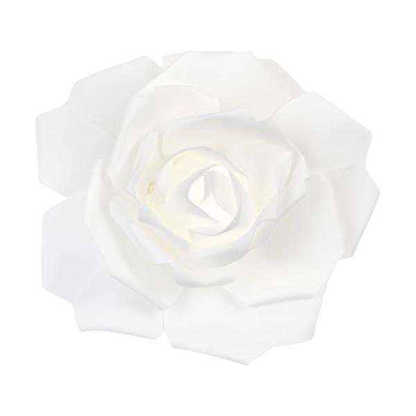 Take your party scene from one dimensional to 3D with our Large Foam Rose Wall Decor! Foam flowers are exquisite DIY decor enhancers. Durable and realistic, they are easy to use for all of your various decor needs with built-in wire hoops for easy setup. This flexible wire is also attached to each petal to adjust the shape to your desired effect. And because of its strength and customizable petals that never wilt or require pruning, this foam flower can be reused over and over with equally stimulating results.Whether you want to dress up your cake table, create a background for a fancy photo booth, or use it to decorate your chair backs, this durable foam rose will personalize your venue and give an upscale aesthetic to your event photos. Ideal for weddings, birthdays, baby showers, nursery decor, DIY crafts, and more. Featuring a small clear battery box behind the petals for easy concealment, this CR2032 3V battery-operated flower is also energy-saving and environment-friendly.