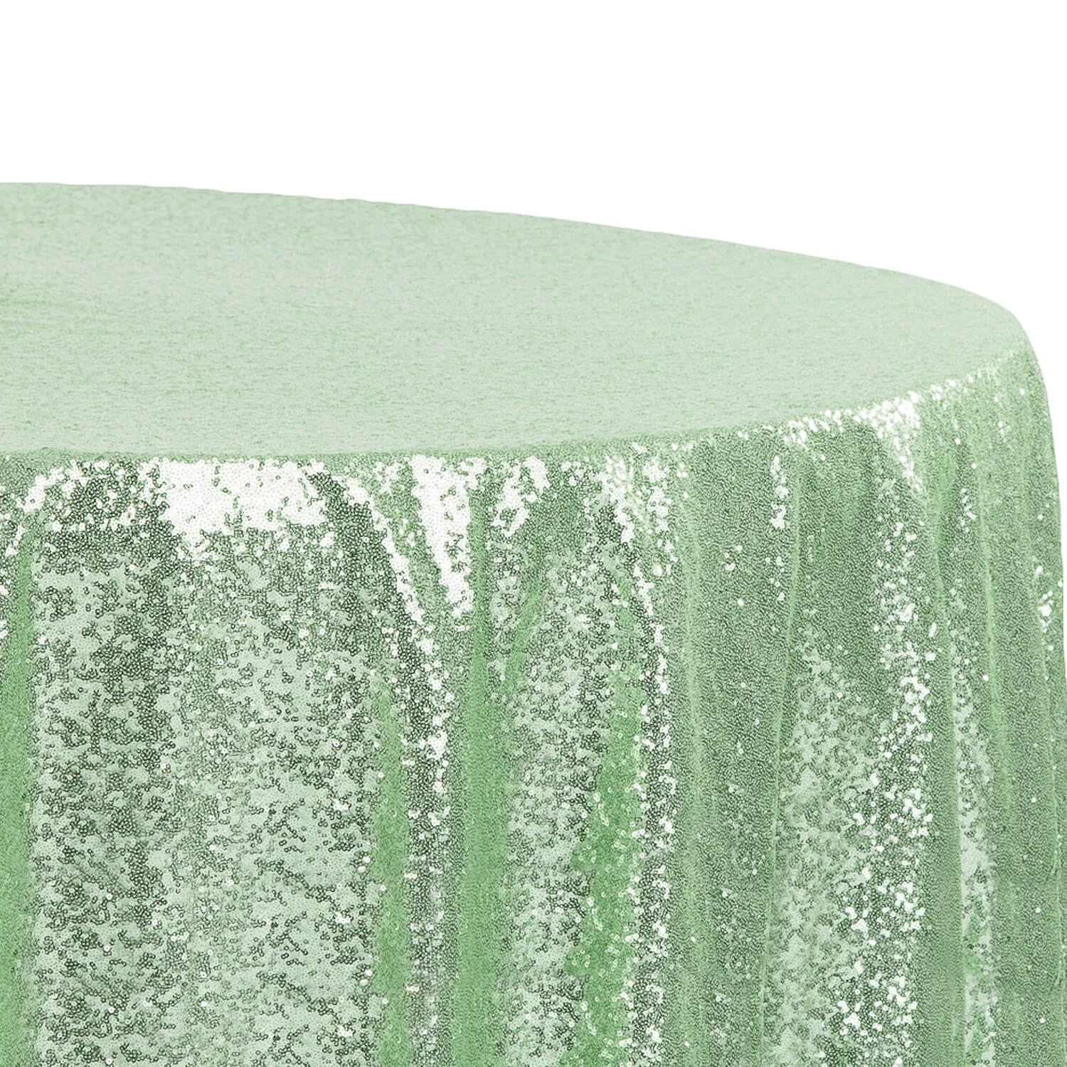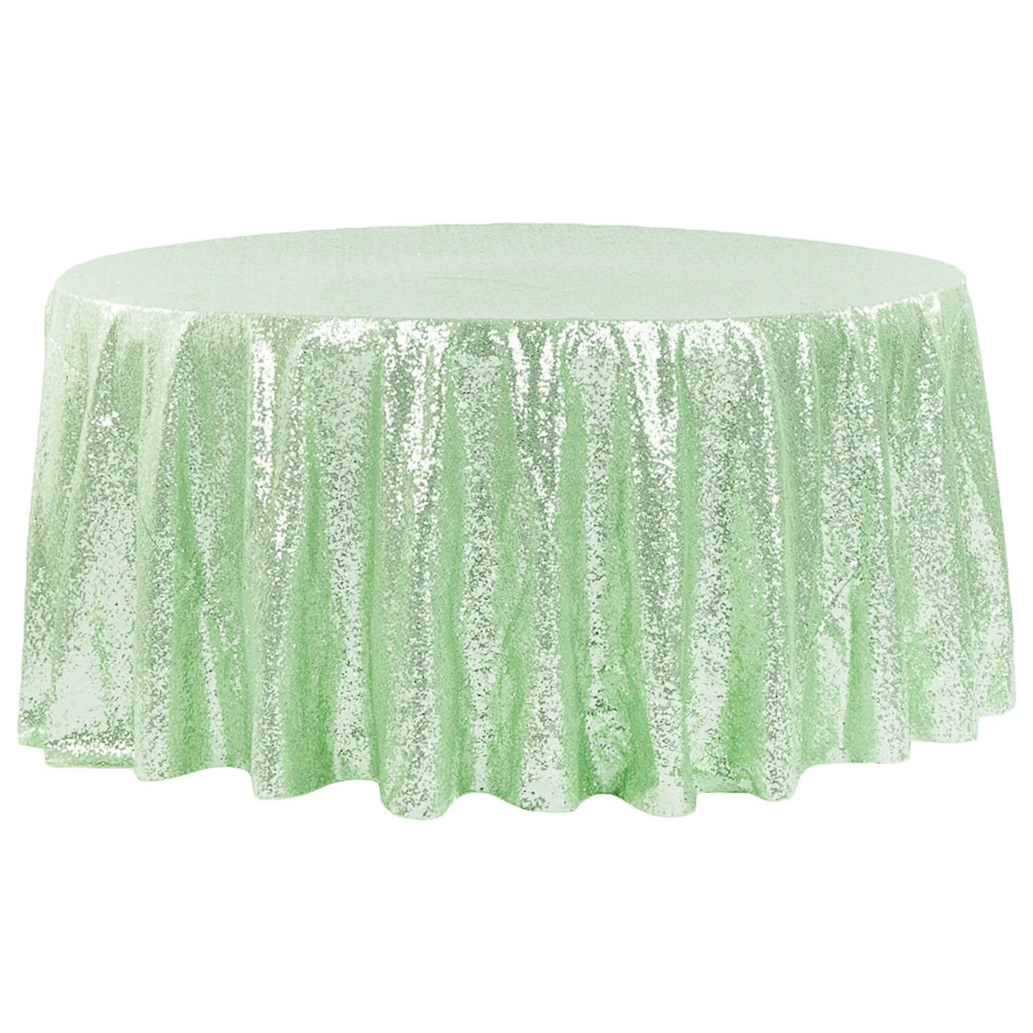 These pale mint green sequined tablecloths bring instant sparkle to your event. Made for round banquet tables, these tablecloths are a party favorite.