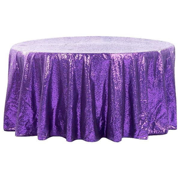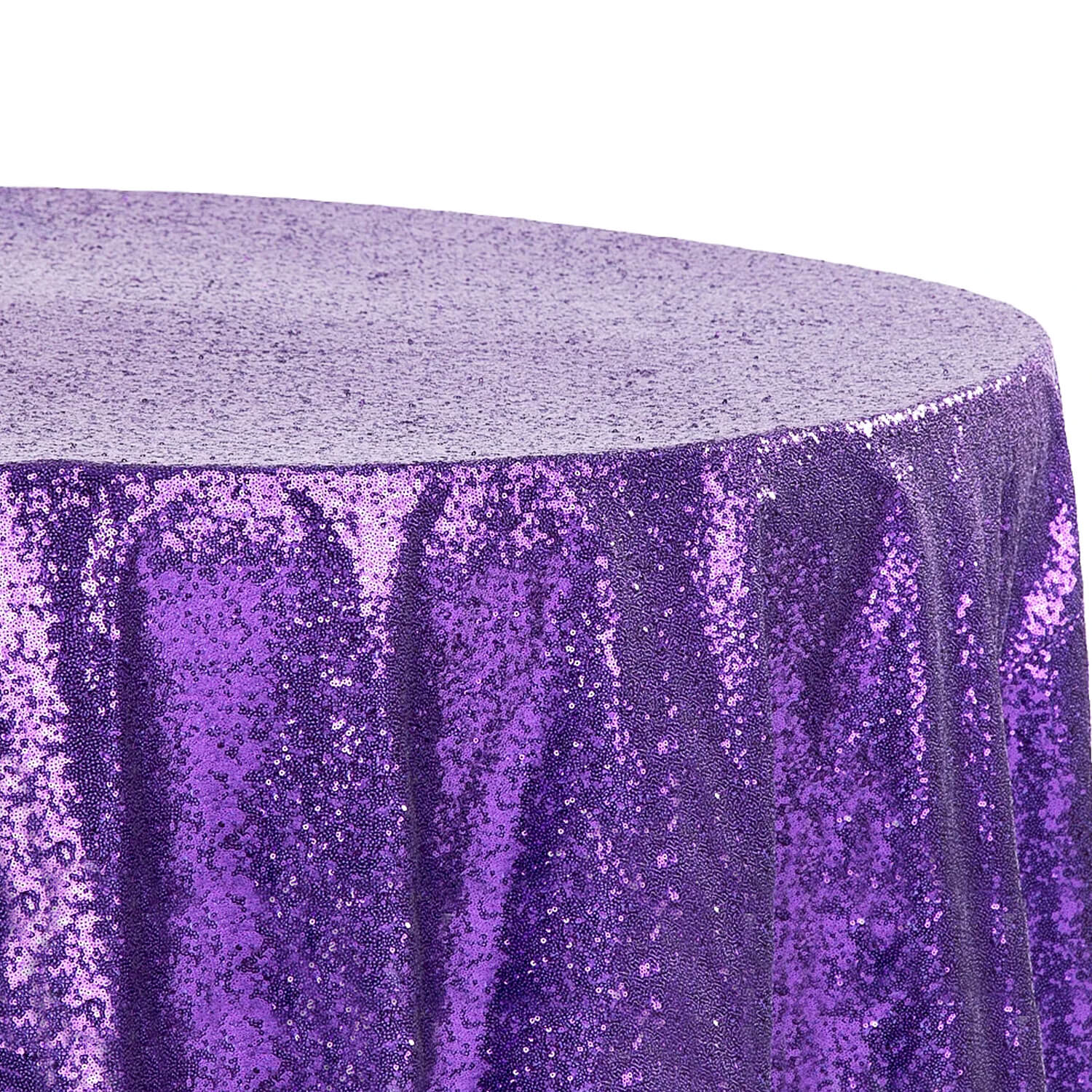 These shimmering purple sequined tablecloths bring instant sparkle to your event. Made for round banquet tables, these tablecloths are a party favorite.