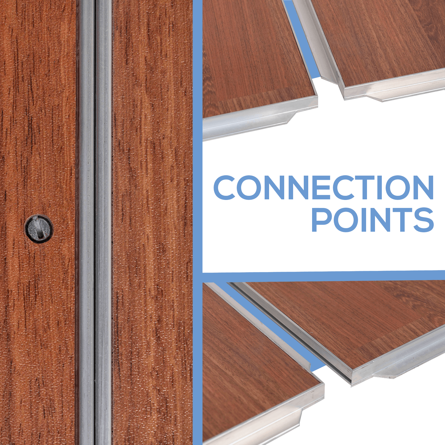Easy Connection and Installation – Our composite laminate panels use a unique, tongue-and groove connection system which is simply aligned and then screwed in place to form a secure, seamless connection that prevents panels from pulling apart, up, down, or sideways. These panels are designed to create an even, stable dance surface over unprepared or uneven ground indoors and out.