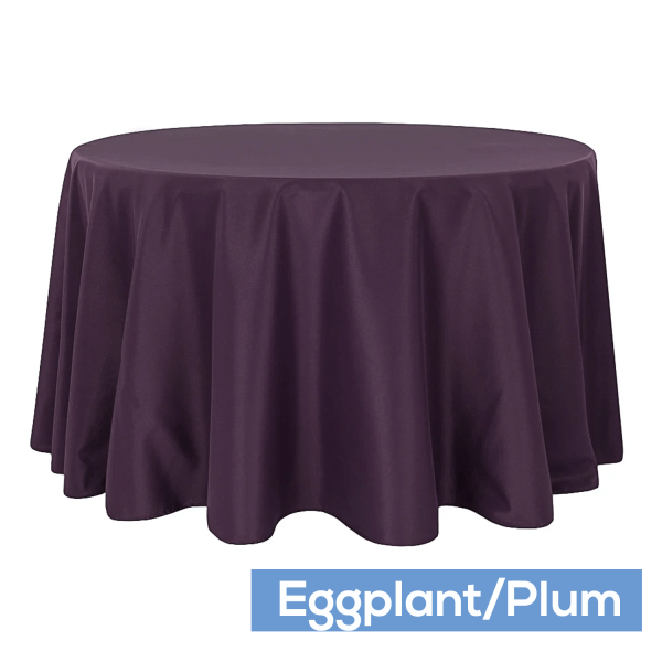 132" Round 200 GSM Polyester Tablecloth in Eggplant / Plum