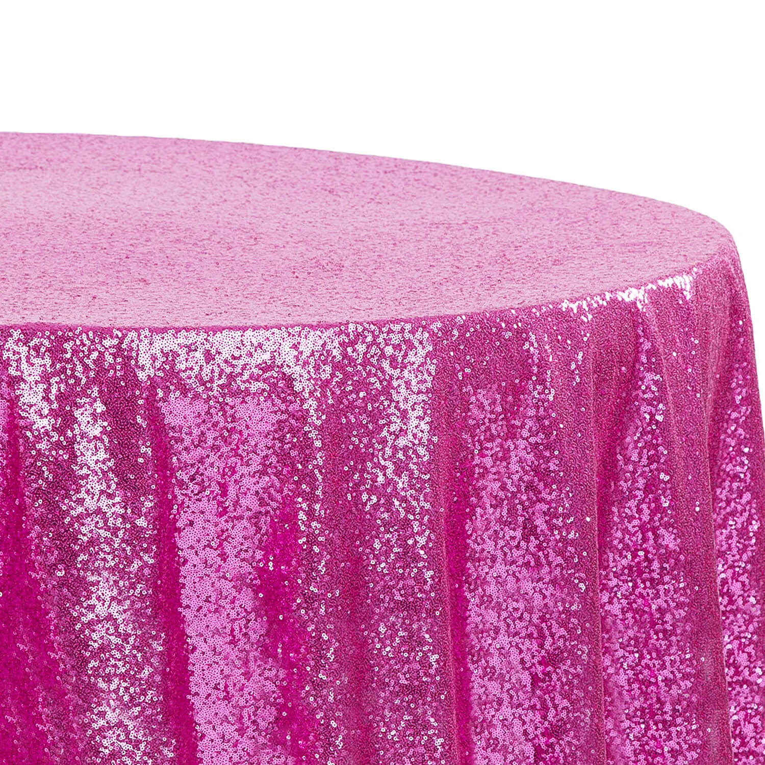 These fuchsia pink sequined table cloths bring instant sparkle to your event. Made for round banquet tables, these tablecloths are a party favorite.