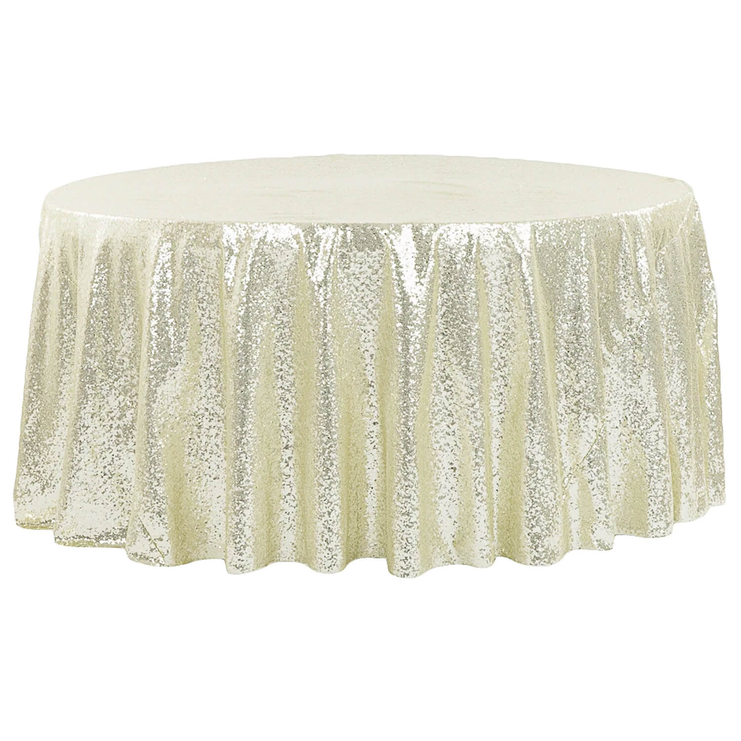 250 132" Round Sequin Tablecloth - Ivory TX-5645US-IVY