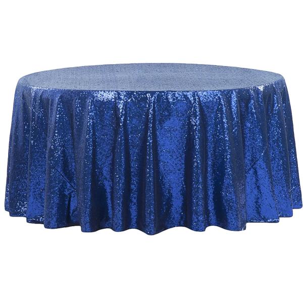 These deep royal blue sequined table cloths bring instant sparkle to your event. Made for round banquet tables, the tone offers a classic look with a bit of glam.