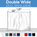 Fabirc is 60" Wide. Double wide panels are 120" with one seam down the center.