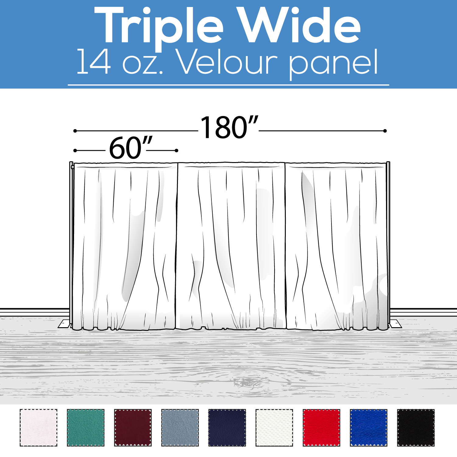 Add some texture and flair to your corporate events, tradeshows, weddings, and more with this unpleated polyester velour. Backdrops, ceiling panels, or partitions, the choice is yours! With a whole assortment of vibrant colors from which to choose, they are suitable for all manner of themes and events, helping to mask those otherwise drab surfaces and liven up those wide, empty spaces. Super premium quality, sheen and luxury guaranteed.