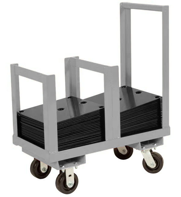 Our sturdy 15” base cart allows you to store your 15” bases. We created a cart which not only protects your bases but uses durable wheels to cut down on set up time. Our design uses sturdy raw metal and durable casters that can hold up to 50 15” bases for a cart rating of 3600 pounds.