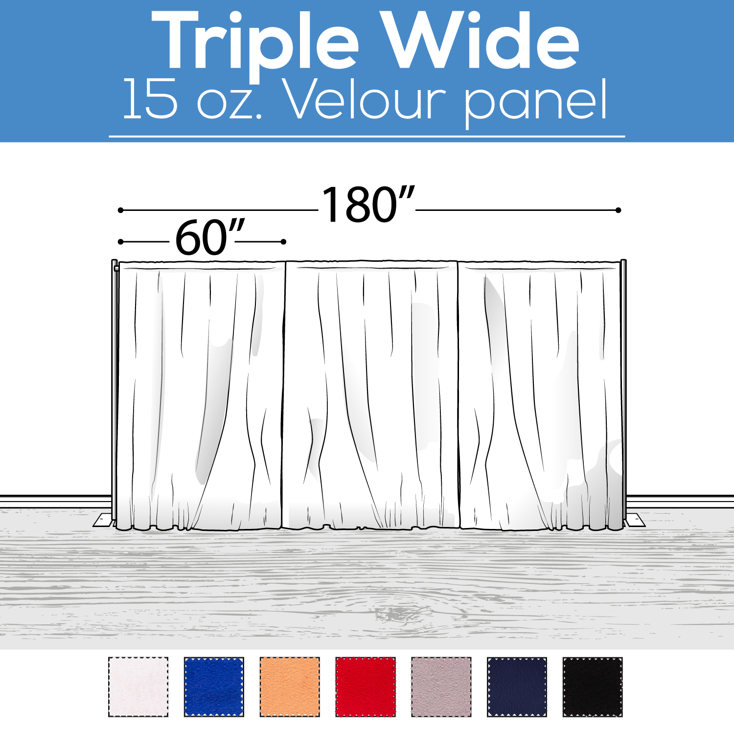 15 oz. Inherently Fire Retardant Polyester Velour - Triple Wide (180") Sewn Drape Panel w/ 4" Rod Pockets - 16ft