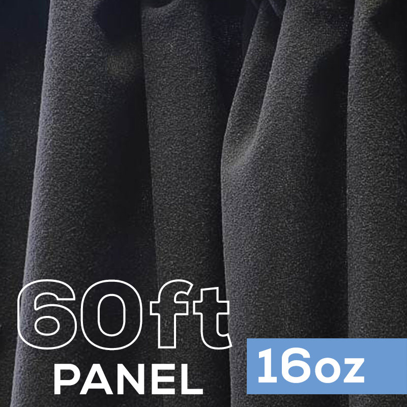 16oz. Fire Retardant Duvetyne/Commando Cloth - Sewn Drape Panel w/ 4" Rod Pockets - 60ft in Black[LIB-60-DUVE-16OZ-BLK]