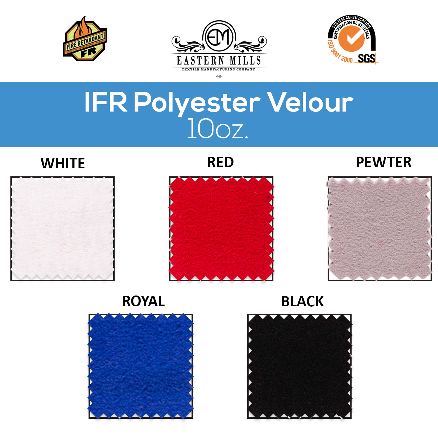 Banjo Cloth Drapes are 48" Wide, Velour are 52" Wide, Poly Premier are 60" Wide and Sheer are 10ft Wide (!) and each backdrop panel is equipped with 3 or 4 drapes (if drape option is chosen, # depends on type of drape)