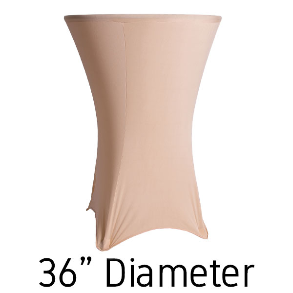 This 36” champagne spandex hi-boy table cover brings an elegant table decoration to your tables and hides unsightly table legs. Our 36” champagne table covers stretch over the top to the bottom up to 36” wide and 30-42” tall cocktail tables. Because of the stretch of our champagne spandex, you can fit square, triangular, and round cocktail tables.