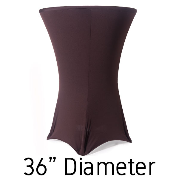 This 36” chocolate brown spandex hi-boy table cover makes a stunning impression on your guests. Our 36” chocolate brown table covers stretch over the top to the bottom up to 36” wide and 30-42” tall cocktail tables. Because of the stretch of our chocolate brown spandex, you can fit square, triangular, and round cocktail tables.