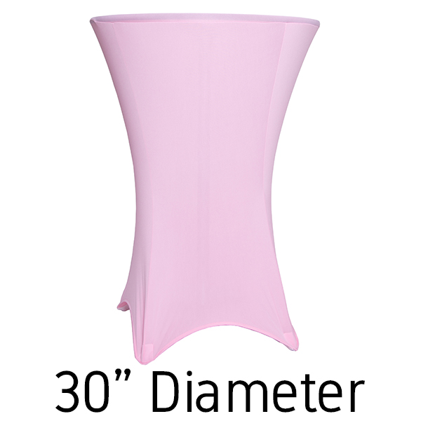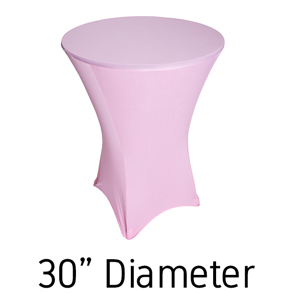 This 30” pink spandex hi-boy table cover creates a glamorous effect for your table decorations. Our 30” pink table covers stretch over the top to the bottom up to 36” wide and 30-42” tall cocktail tables. Because of the stretch of our pink spandex, you can fit square, triangular, and round cocktail tables.