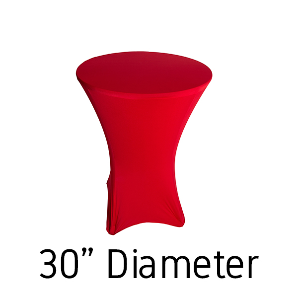 This 30” red spandex hi-boy table cover allows you to decorate with elegance and sophistication. Our 30” red table covers stretch over the top to the bottom up to 36” wide and 30-42” tall cocktail tables. Because of the stretch of our red spandex, you can fit square, triangular, and round cocktail tables.