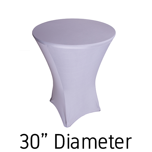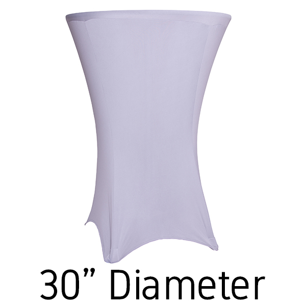 This 30” silver spandex hi-boy table cover decorates your event with a sparkling touch. Our 30” silver table covers stretch over the top to the bottom up to 36” wide and 30-42” tall cocktail tables. Because of the stretch of our silver spandex, you can fit square, triangular, and round cocktail tables.