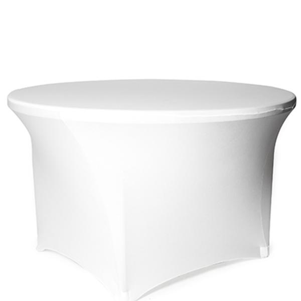 Cover your tables in an elegant curving table cover by using our 60” white banquet spandex table cover. Our round banquet spandex table cover is designed for commercial use with a super stretch that makes beautiful curves. These spandex table covers stretch to cover 60” banquet tables.