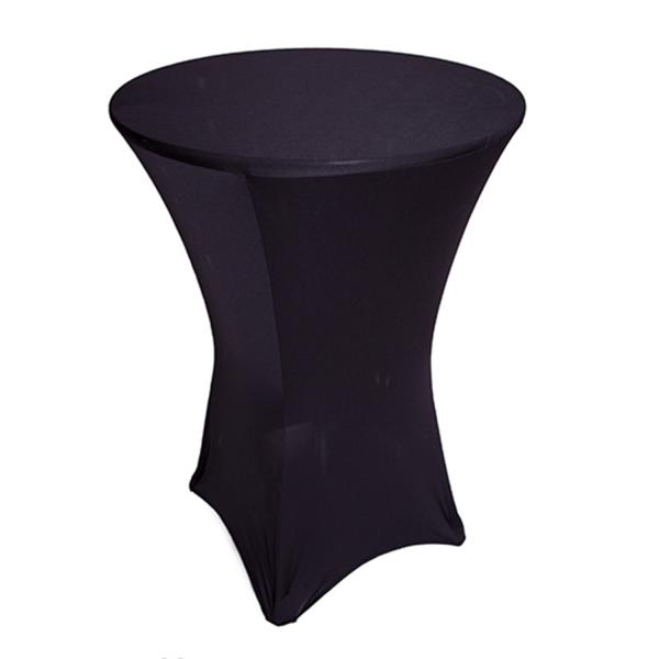 Cover your tables in an elegant curving table cover by using our 30” black cocktail spandex table cover. Our round cocktail spandex table cover is designed for commercial use with a super stretch that makes beautiful curves. These spandex table covers stretch to cover 30” cocktail tables.
