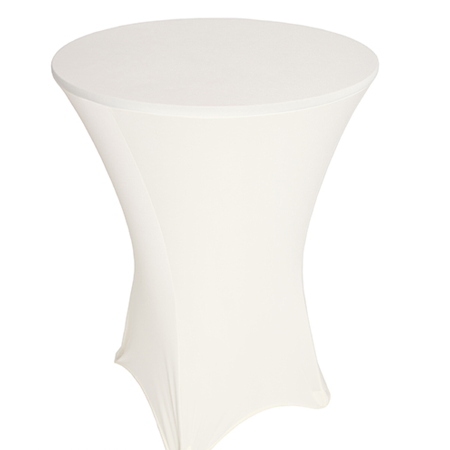 Cover your tables in an elegant curving table cover by using our 30” ivory cocktail spandex table cover. Our round cocktail spandex table cover is designed for commercial use with a super stretch that makes beautiful curves. These spandex table covers stretch to cover 30” cocktail tables.