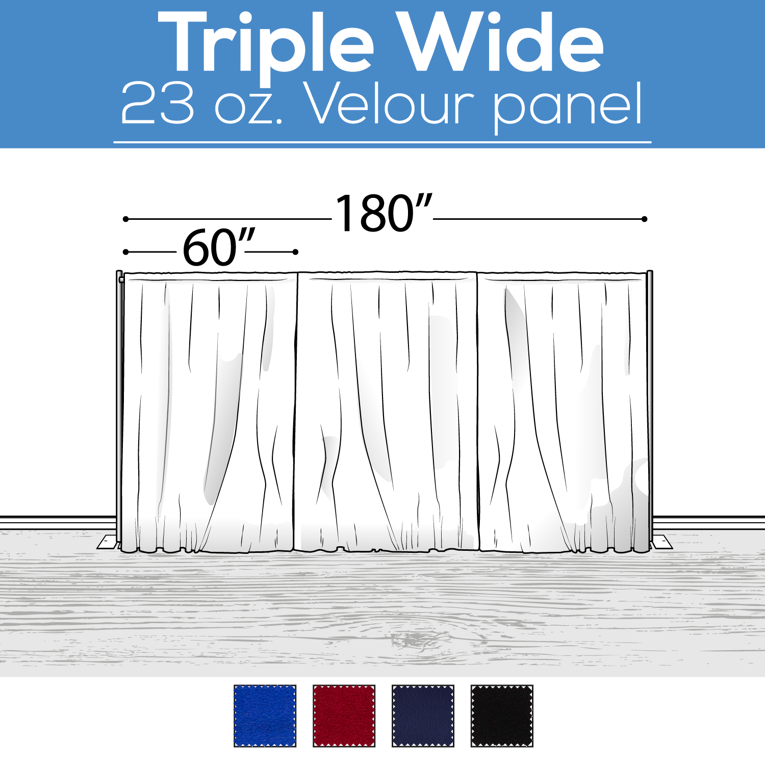 IFR Velour Cloth 60/62″ wide. Triple wide panels will have 2 joining seams.