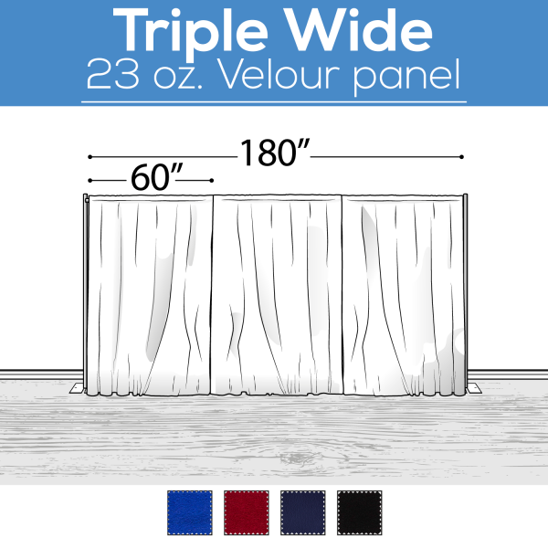 23 oz. Inherently Fire Retardant Polyester Velour - Triple Wide (180") Sewn Drape Panel w/ 4" Rod Pockets - 16ft