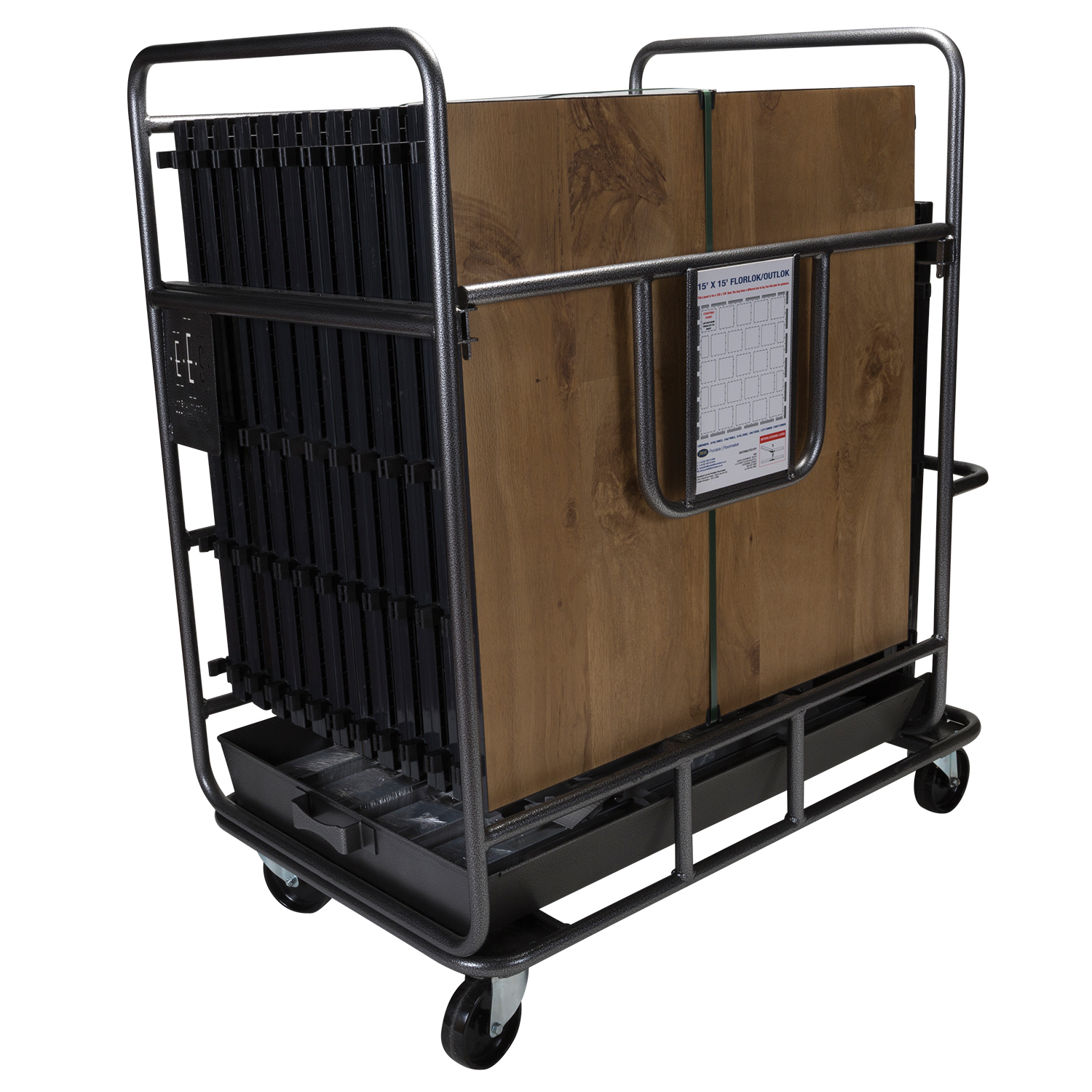 • TRANSPORT/STORAGE CARTS ARE AVAILABLE TO HOLD UP TO A 15′ X 15′ DANCE FLOOR