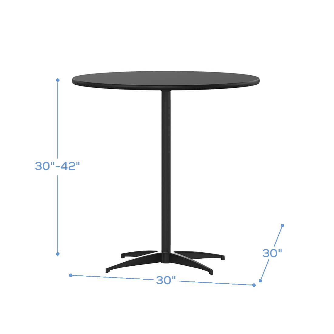 30 Inch Round Pub / Cocktail Table - All Black - w/ 30" and 42" Columns![XA-30-COTA-BK-GG]