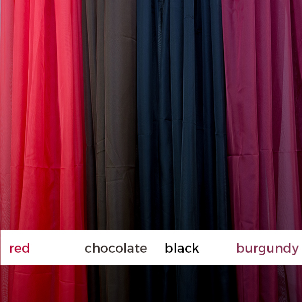 These 30ft 8-panel sheer fabric ceiling drapes come in 30 different colors to suit your decoration needs. Our high-quality sheer fabric turns a drab or boring ceiling into a decoration masterpiece. This 30ft ceiling draping comes with eight panels of sheer drapes with four-inch rod pockets sewn in on either end.