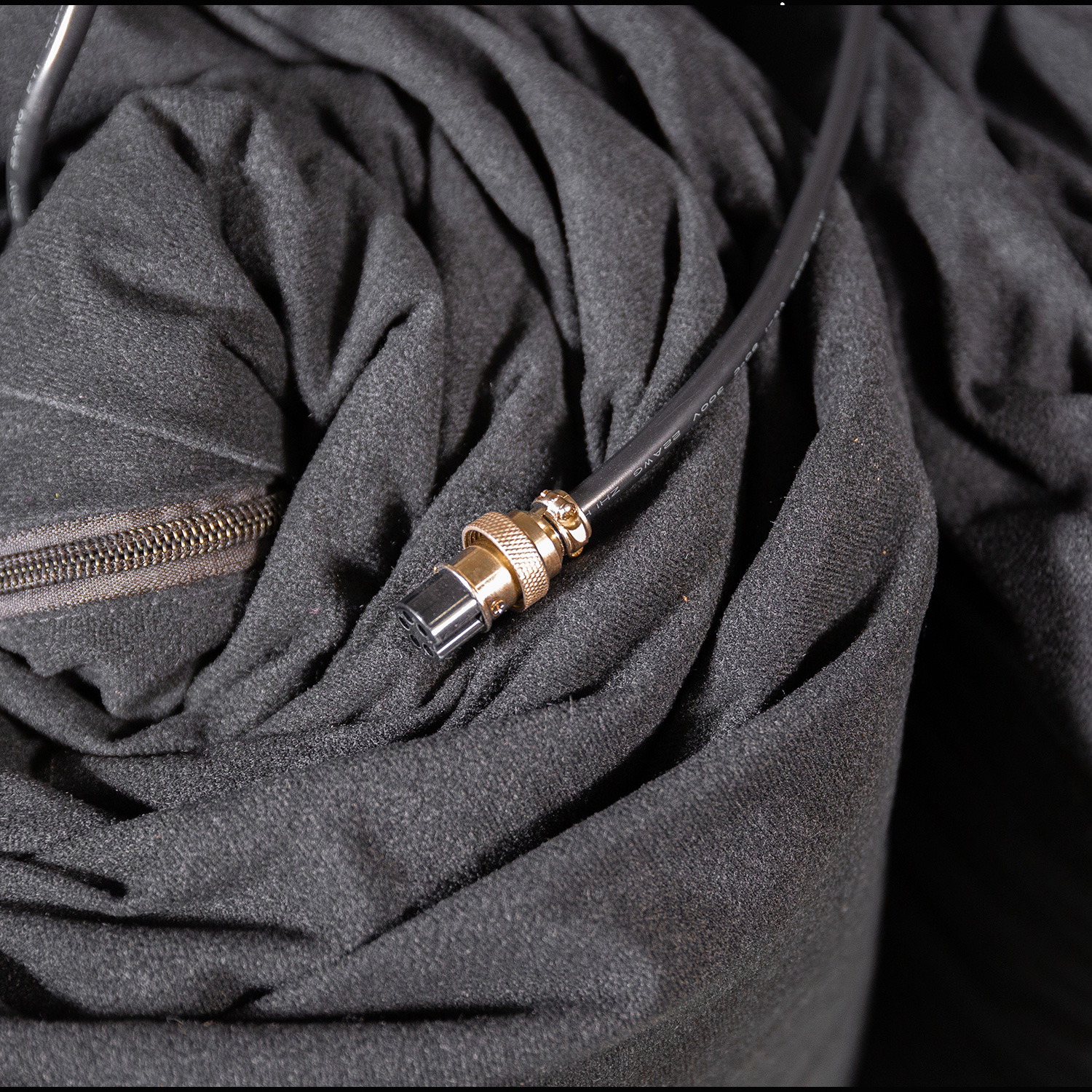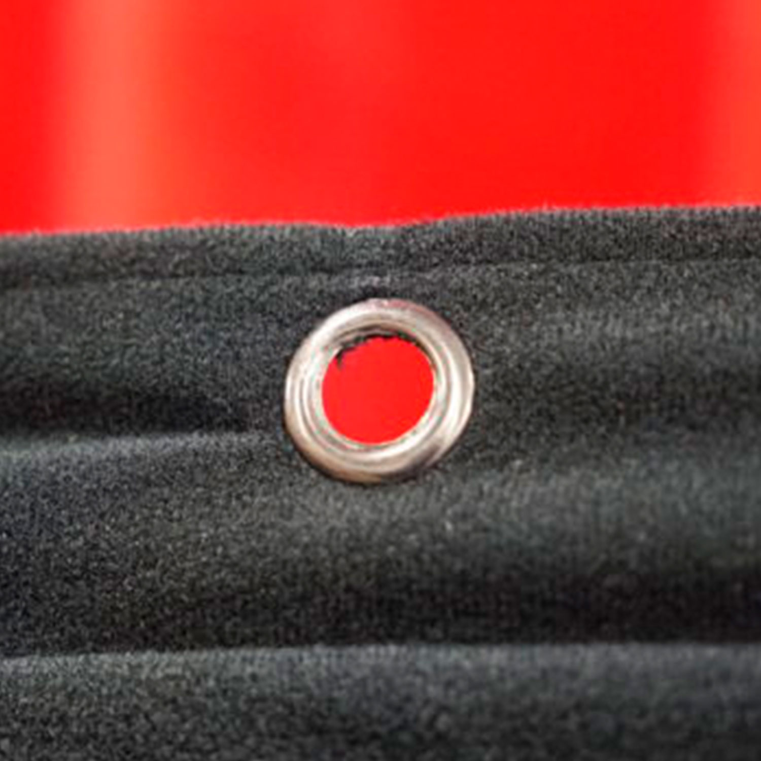 Finishes: Sewn flat with black grommets every 16" on all four sides. Black fabric liner zippers to the back of the curtain.