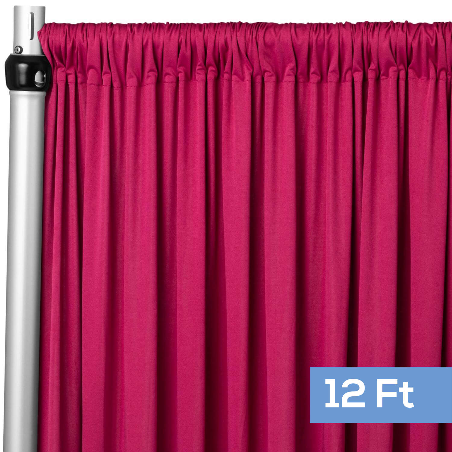 Our spandex drape curtains capture a sophisticated and tailored look that will accentuate any venue and any theme. Whether hiding bland walls or acting as partitions in order to seperate designated party spaces, they will bring a truly sleek design element to any occasion or event: weddings, trade shows, or stage backdrops for stellar photo booth affairs! Pair with flowers, balloons, and event backdrop lighting for truly spectacular scenes. Indoor or outdoor, winter or spring, these stretch drape curtains are just the eye-catching features that the party needs. They also provide excellent coverage. Made of 90% polyester and 10% lycra spandex, this durable drape stretches crosswise and lengthwise to create eye-catching feature walls. The generous 12ft x 60" width offers more than enough material to cover your desired party zone for a clean, stylish look, and the 4" pockets assure easy installation.The wrinkle-free, machine washable, and dryable stretch fabric is also easy to care for, making it a perfect decor prop to have on hand for repeat use.