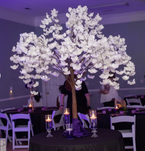 Love the look of hydrangeas with their many blossoms? If so, then you’ll love this blooming hydrangea tree with it drooping branches and its hundreds of tiny white blossoms. At 5’ 5” tall these trees made beautiful focal points for your event space. Add for great photo ops, as part of a large floral display, or to set the theme of your space.