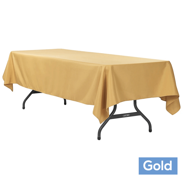 60" x 120" Rectangular 200 GSM Polyester Tablecloth in Gold