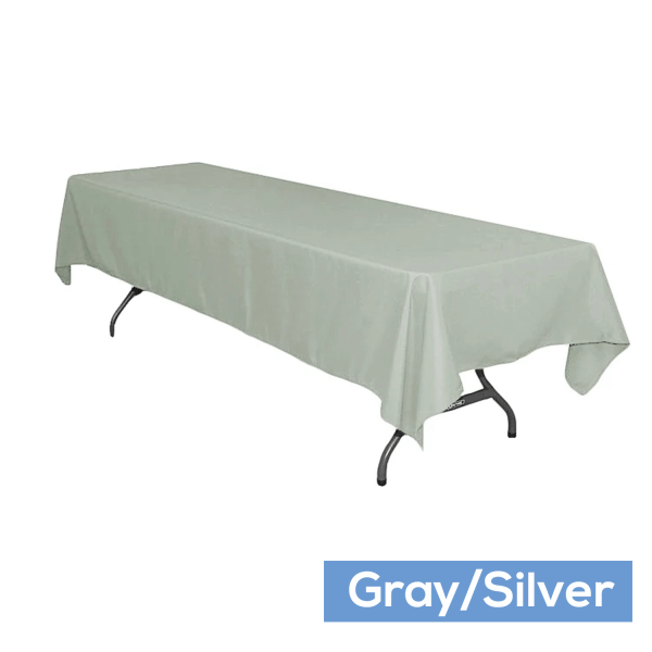 60" x 126" Rectangular 200 GSM Polyester Tablecloth in Gray/Silver