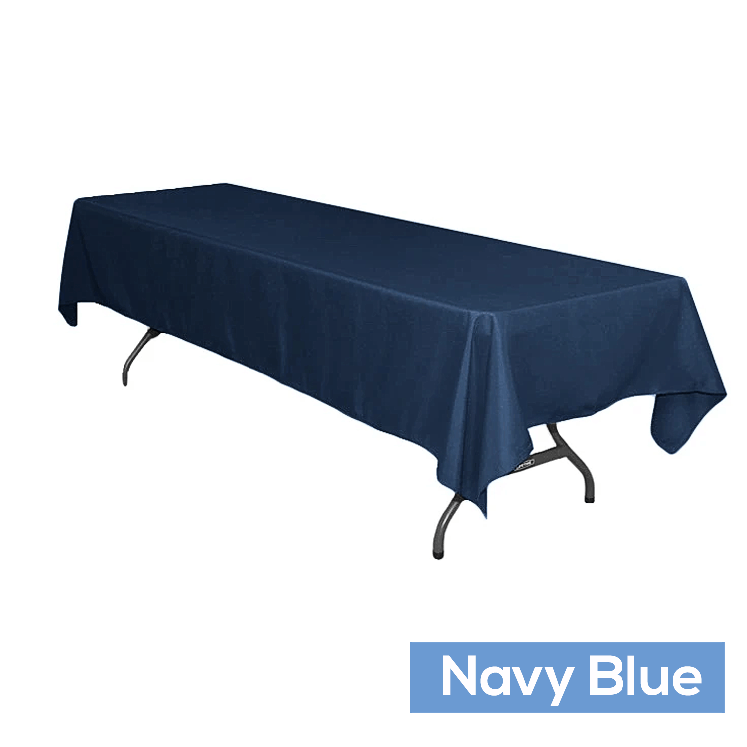 60" x 126" Rectangular 200 GSM Polyester Tablecloth in Navy Blue