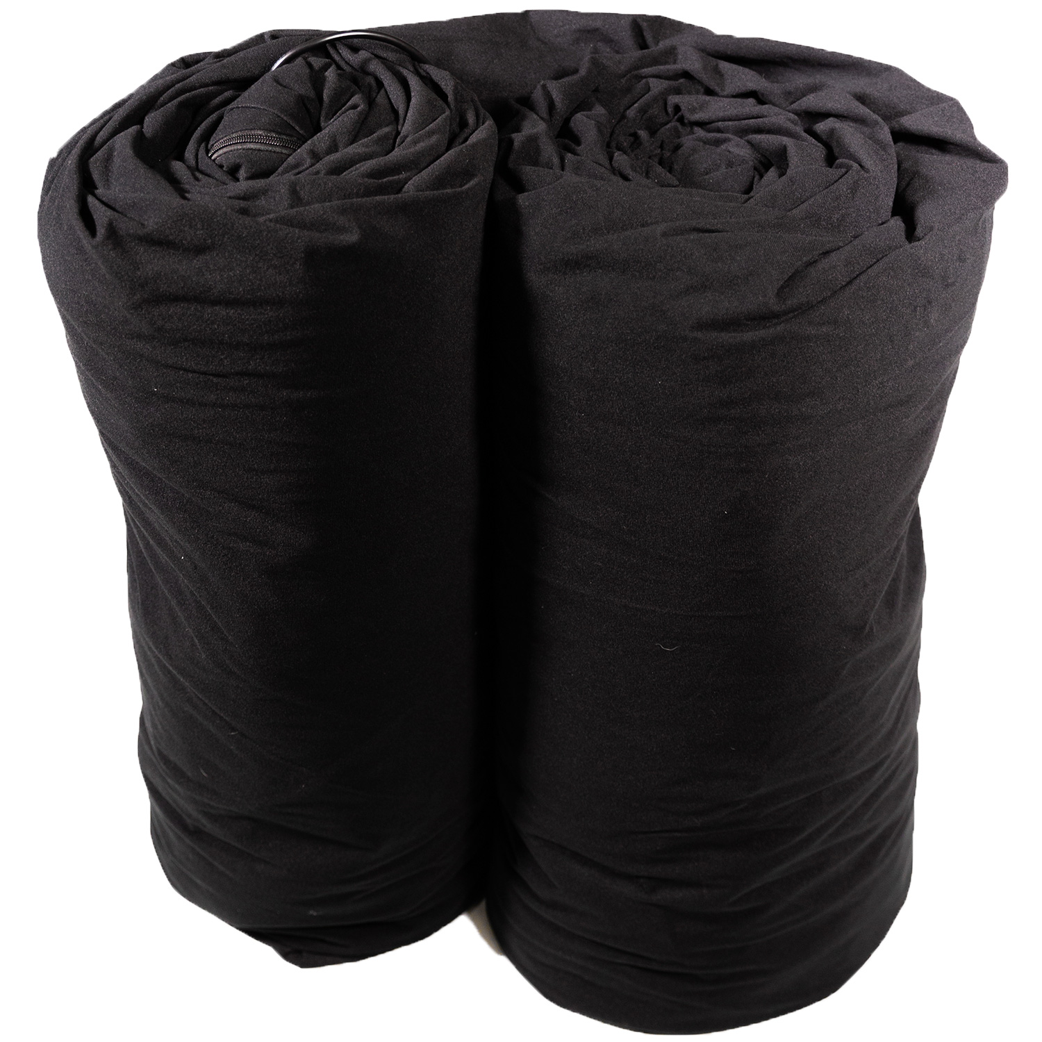 Finishes: Sewn flat with black grommets every 16" on all four sides. Black fabric liner zippers to the back of the curtain.