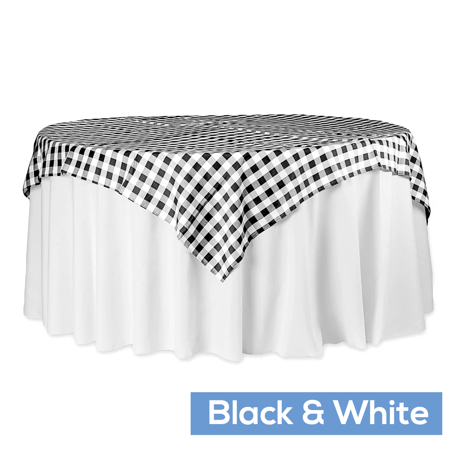 70" Square 175 GSM Polyester Checkered Tablecloth / Overlay in Black & White