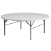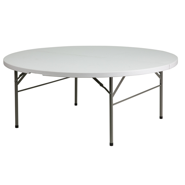 Our 72” round resin tables are perfect for the times you need a table to handle the heavy duty. Their smooth 1 ¾” surface is blow molded polyurethane, making it resistant to cracking, scratches, stains, and even weather. Each 72” round resin table comes with standard 30” tall legs that snap into place securely.
