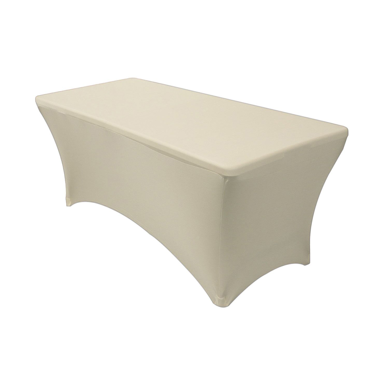 Cover your tables in an elegant curving table cover by using our 8ft ivory banquet spandex table cover. Our ivory banquet spandex table cover is designed for commercial use with a super stretch that makes beautiful curves. These spandex table covers stretch to cover 8ft banquet tables.