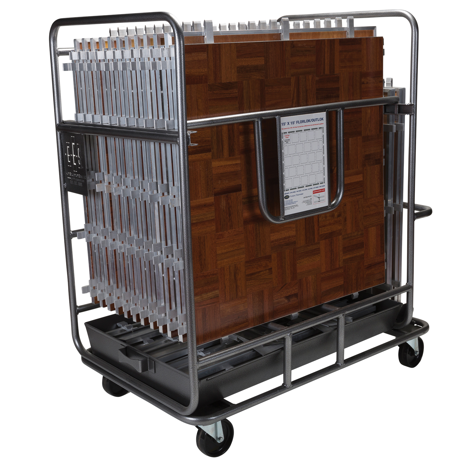 storage CART HOLDS A 15` X 15` DANCE FLOOR, FOR EASY TRANSPORTATION AND STORAGE.