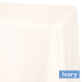 Color: Ivory Material: 100% Polyester Fabric Weight: Approx. 200 GSM Size: Approx. 90"x108" rectangular (rounded corners) Pack: 1 per polybag Care Instruction: Machine Washable & Dryable. Do not bleach. Drop: A 90"x108" Tablecloth will touch the floor placed over a 4 foot rectangular table. (30" standard height)