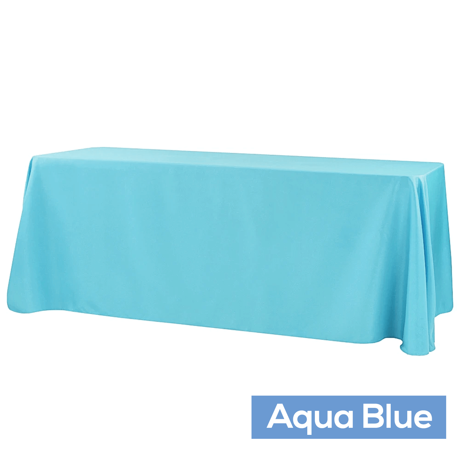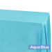 Color: Aqua Blue Material: 100% Polyester Fabric Weight: Approx. 200 GSM Size: Approx. 90"x132" rectangular (rounded corners) Pack: 1 per polybag Care Instruction: Machine Washable & Dryable. Do not bleach. Drop: A 90"x132" Tablecloth will touch the floor placed over a 6 foot rectangular table. (30" standard height)