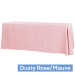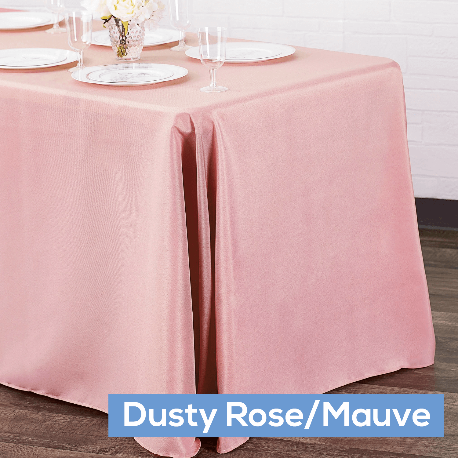 Color: Dusty Rose/Mauve Material: 100% Polyester Fabric Weight: Approx. 200 GSM Size: Approx. 90"x132" rectangular (rounded corners) Pack: 1 per polybag Care Instruction: Machine Washable & Dryable. Do not bleach. Drop: A 90"x132" Tablecloth will touch the floor placed over a 6 foot rectangular table. (30" standard height)