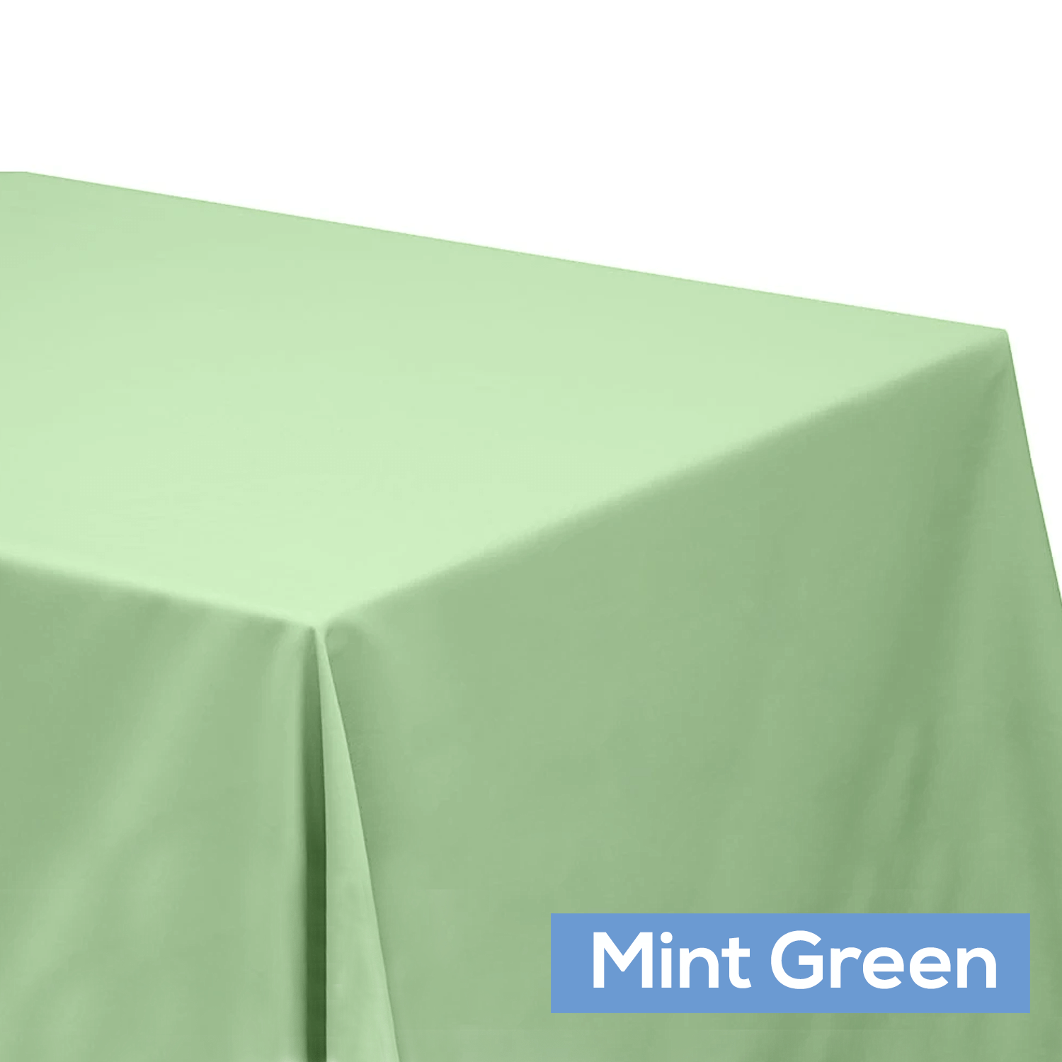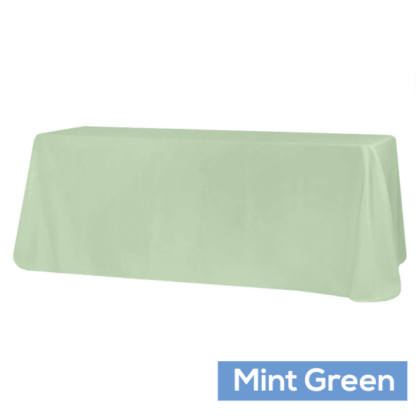 Color: Mint Green Material: 100% Polyester Fabric Weight: Approx. 200 GSM Size: Approx. 90"x132" rectangular (rounded corners) Pack: 1 per polybag Care Instruction: Machine Washable & Dryable. Do not bleach. Drop: A 90"x132" Tablecloth will touch the floor placed over a 6 foot rectangular table. (30" standard height)