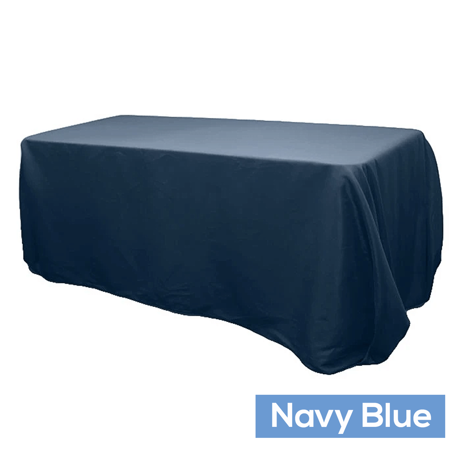 Color: Navy Blue Material: 100% Polyester Fabric Weight: Approx. 200 GSM Size: Approx. 90"x132" rectangular (rounded corners) Pack: 1 per polybag Care Instruction: Machine Washable & Dryable. Do not bleach. Drop: A 90"x132" Tablecloth will touch the floor placed over a 6 foot rectangular table. (30" standard height)