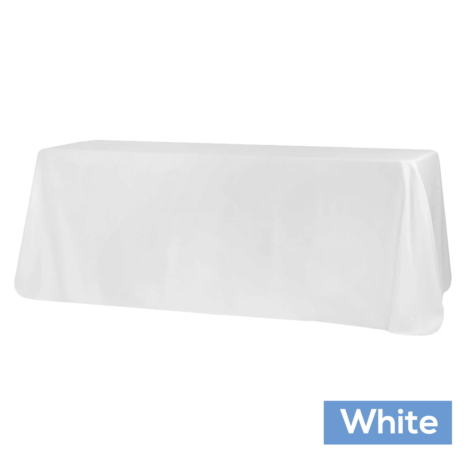 The 125-130 GSM Polyester fabric is a quality fabric that makes these linens are not only durable, but look fantastic. The classic white offers a traditional and elegant look while fitting many themes and applications, helping to mask the otherwise drab surfaces of banquet tables. Use at corporate events, tradeshows, restaurants, weddings, conferences and more.