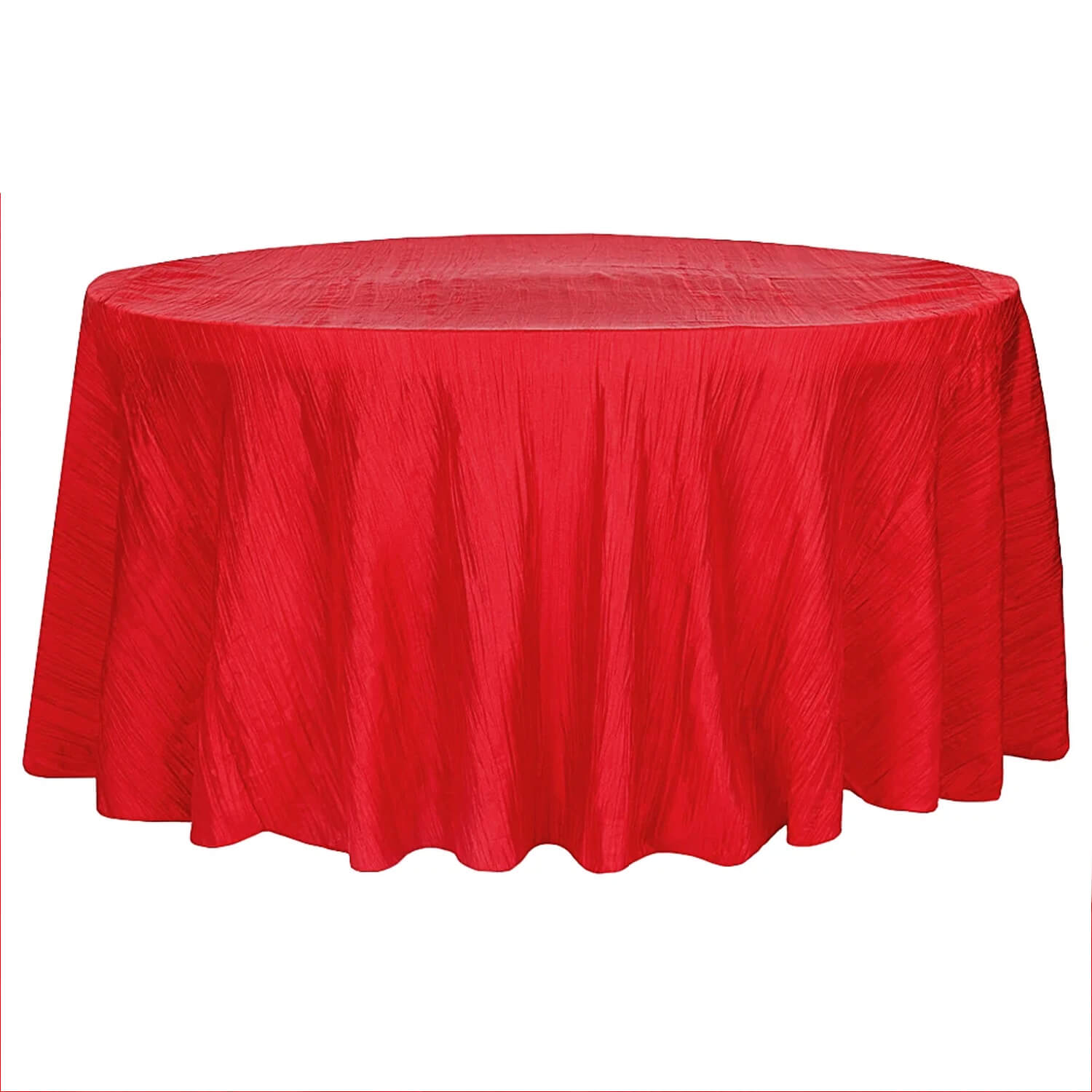 Accordion Crushed Taffeta 120" Round Tablecloth in Red.