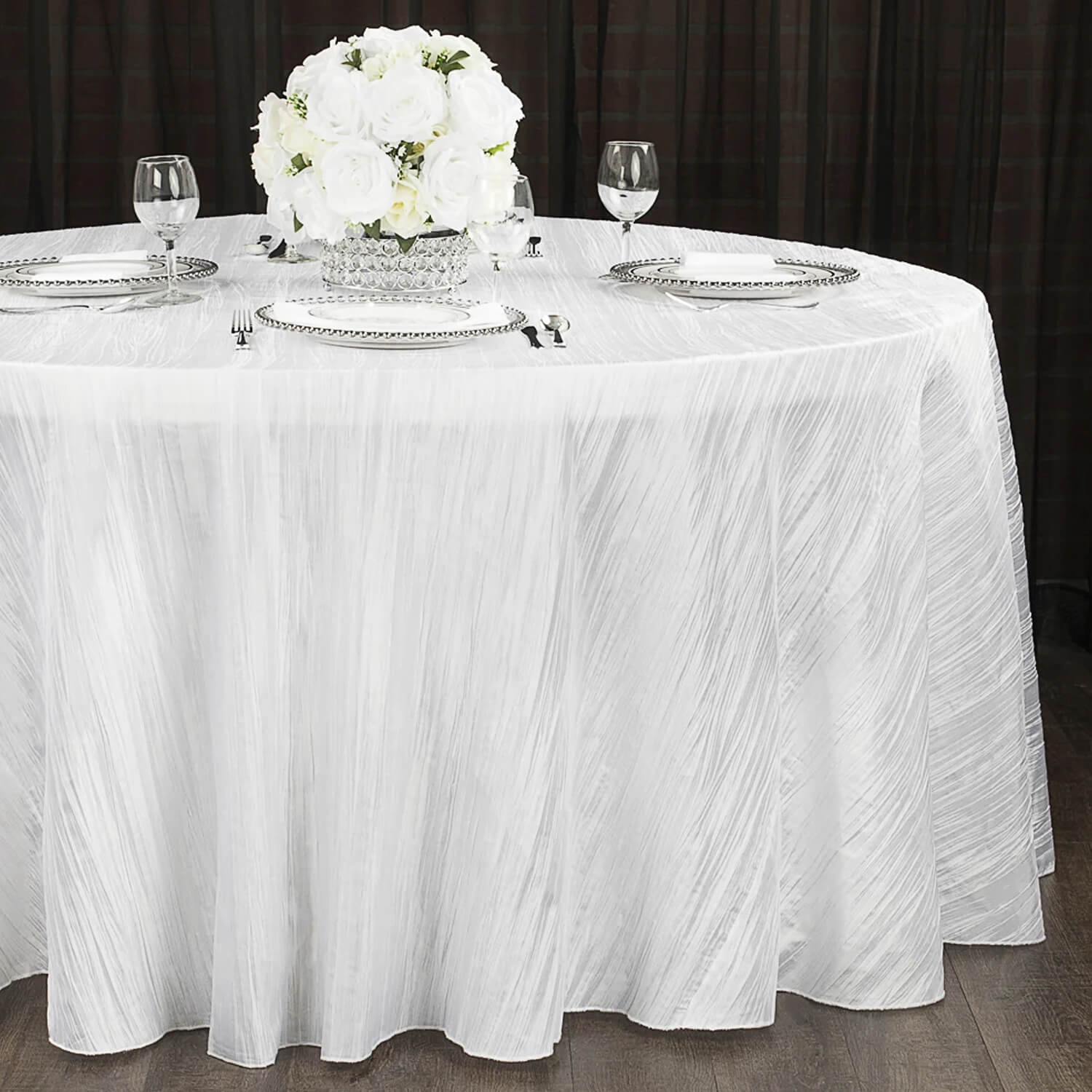 Accordion Crushed Taffeta 120" Round Tablecloth in White
