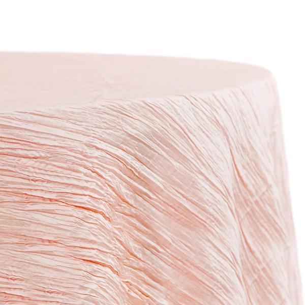 Accordion Crushed Taffeta 132" Round Tablecloth in Blush/Rose Gold.