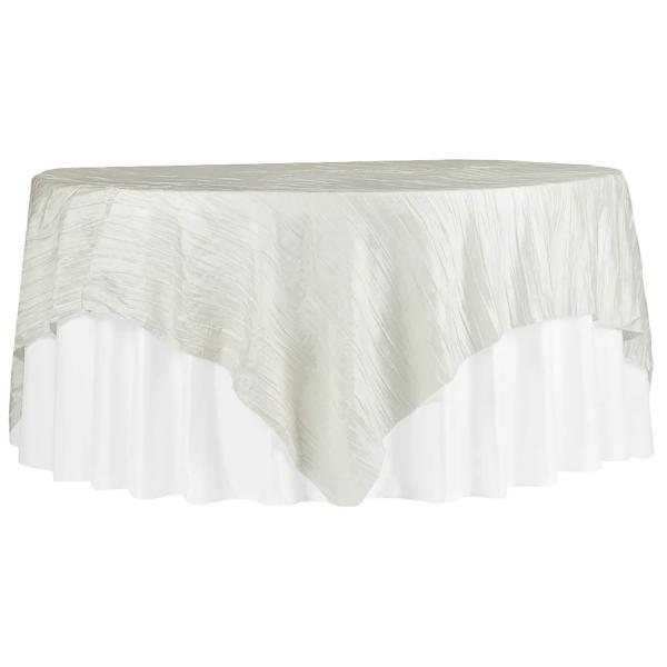 Accordion Crushed Taffeta - 85"x85" Square Table Topper/Overlay - Ivory